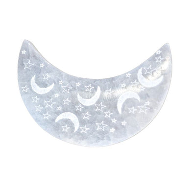 Celestial moons and stars engraved on a crescent moon selenite plate! Perfect for charging your smaller crystals and looks great as a display for your jewelry or trinkets.