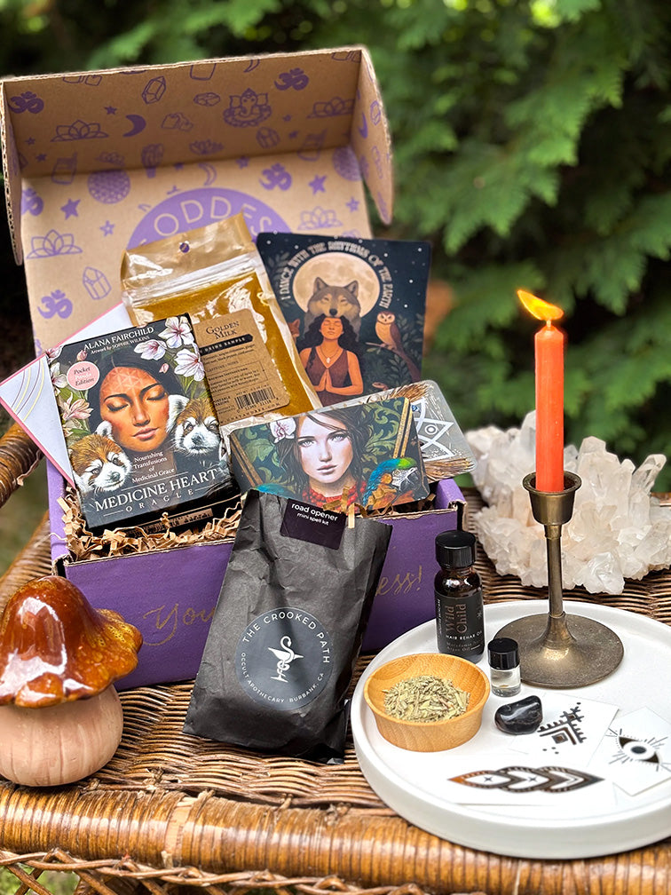 Rediscover your inner magic with our thoughtfully curated spiritual subscription box. Each Goddess Provisions box is a portal to deeper connections with your inner self, intuitive awakenings, and opportunities to expand your spiritual practice. Unbox a monthly collection of 5-7 items that were handpicked to support a specific intention or theme.