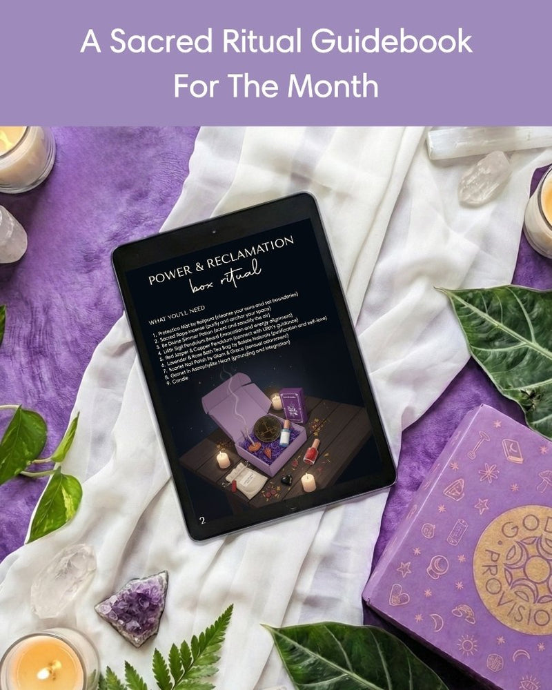 Rediscover your inner magic with our thoughtfully curated spiritual subscription box. Each Goddess Provisions box is a portal to deeper connections with your inner self, intuitive awakenings, and opportunities to expand your spiritual practice. (For addition to themed box descriptions) Unbox a monthly collection of 5-7 items that were handpicked to support a specific intention or theme.